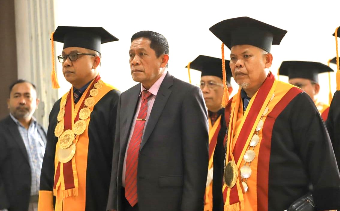 Acara ini turut dihadiri Ketua DPRD Sultra atau perwakilan, Anggota Forkopimda, Wali Kota Kendari, Rektor UHO beserta jajaran wakil rektor, ketua dan anggota senat, guru besar, serta civitas akademika UHO.