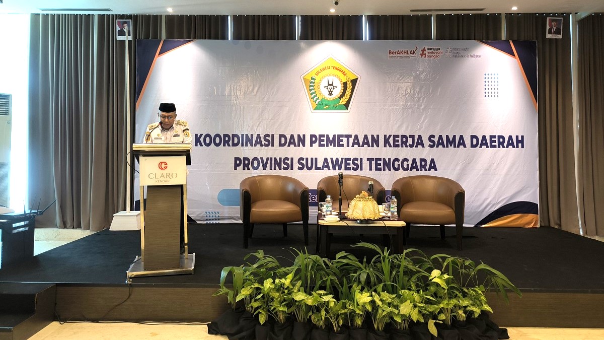 PILARSULTRA.COM, Kendari — Sekretaris Daerah Provinsi Sulawesi Tenggara yang diwakili Kepala Biro Pemerintahan Setda Sultra, Iwan Susanto, secara resmi membuka Rapat Koordinasi dan Pemetaan Kerja Sama Daerah di Hotel Claro Kendari, Rabu (1/10/2025).